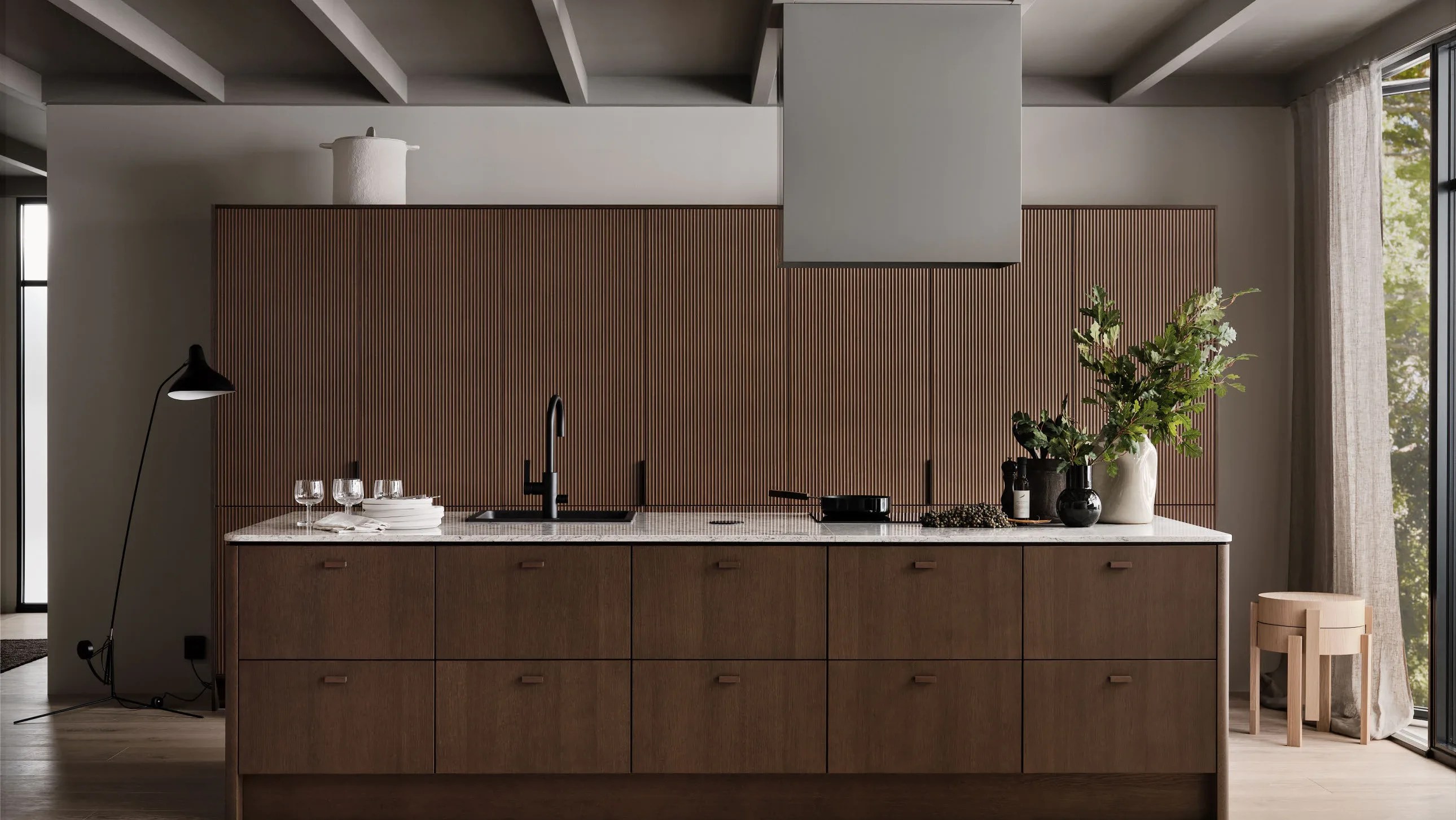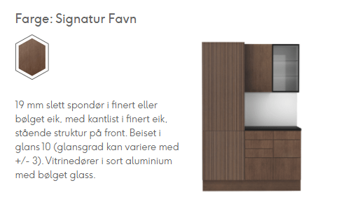 Signatur Favn er mer enn et kjøkken. Det er en idé og et formspråk inspirert av vår nordiske natur. Vår visjon er at kjøkkenet skal gi deg samme ro og harmoni som et besøk i naturen selv. Inspirasjonen har vi hentet fra våre vakre eikeskoger. Organiske former fra majestetiske eiketrær. Barkens tekstur og levende overflate. Vindens krusninger på elver og vann. Gresset som vaier og skogens rike og naturlige fargepalett.