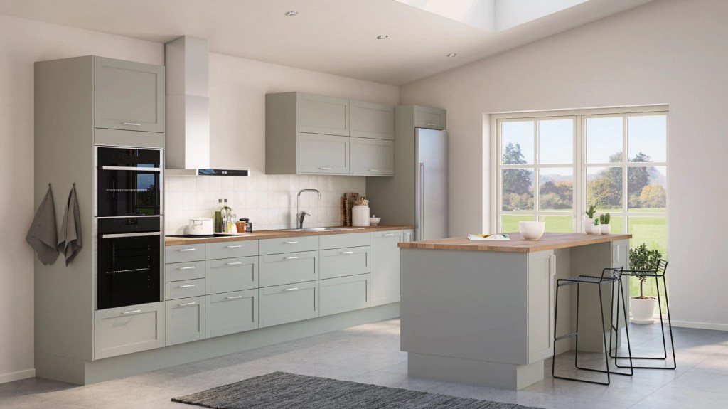 Nett og tidløs crossover-modell. Fronter med enkel ramme og slett fylling, noe som kombinerer vintage kjøkkendesign med et moderne uttrykk. Du kan forsterke det ene eller det andre gjennom valg av tilbehør.